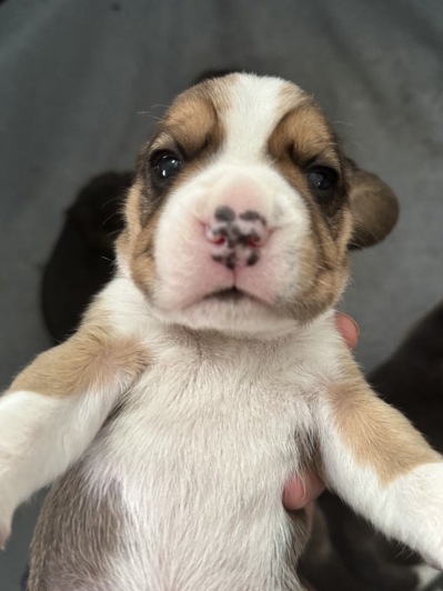 Det skjer ikke så mye i valpekassen- det går mye i søvn og mat. Men så plutselig en morgen så oppdager man at de har åpnet øynene og med en gang får de personlighet. Nå ser vi frem over til de neste ukene som vi vet kommer til å være fulle av utvikling. Valpene har også fått en runde med behandling mot innvollsparasitter og klipp av negler.